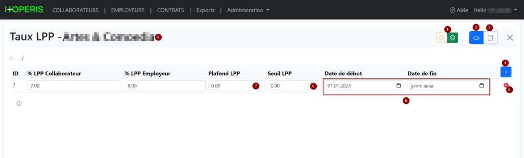 - Le taux LPP est appliqué pour une période de date, s’il change, vous pouvez indiquer une nouvelle période de validité.